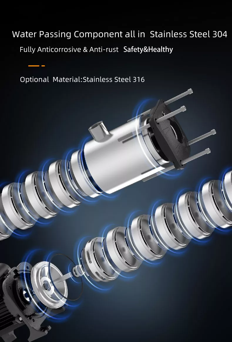 4. Energeticky účinné: Naše vícestupňové čerpadlo se svým pokročilým designem a špičkovou technologií optimalizuje spotřebu energie a pomáhá vám snižovat provozní náklady při zachování špičkového výkonu.