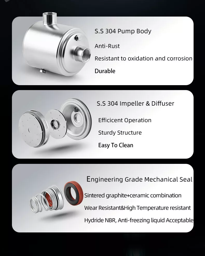 Všestranné aplikace: Od obytných vodních systémů po zemědělské zavlažování a průmyslové procesy je toto čerpadlo dostatečně univerzální, aby to všechno zvládlo. Díky jeho vysokotlakému výstupu je vhodný pro různá nastavení a poskytuje vám spolehlivé řešení pro vaše čerpací potřeby.