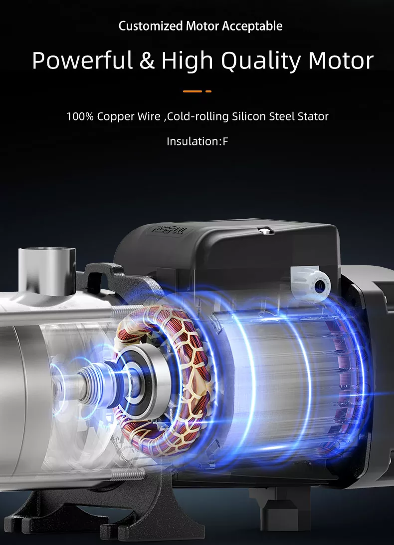 Inovativní design: Naše inteligentní vysokotlaké vícestupňové čerpadlo je vybaveno nejmodernější technologií, což zajišťuje optimální funkčnost a trvanlivost. Vícestupňový design umožňuje vysokotlaký výstup, díky čemuž je ideální pro širokou škálu aplikací.