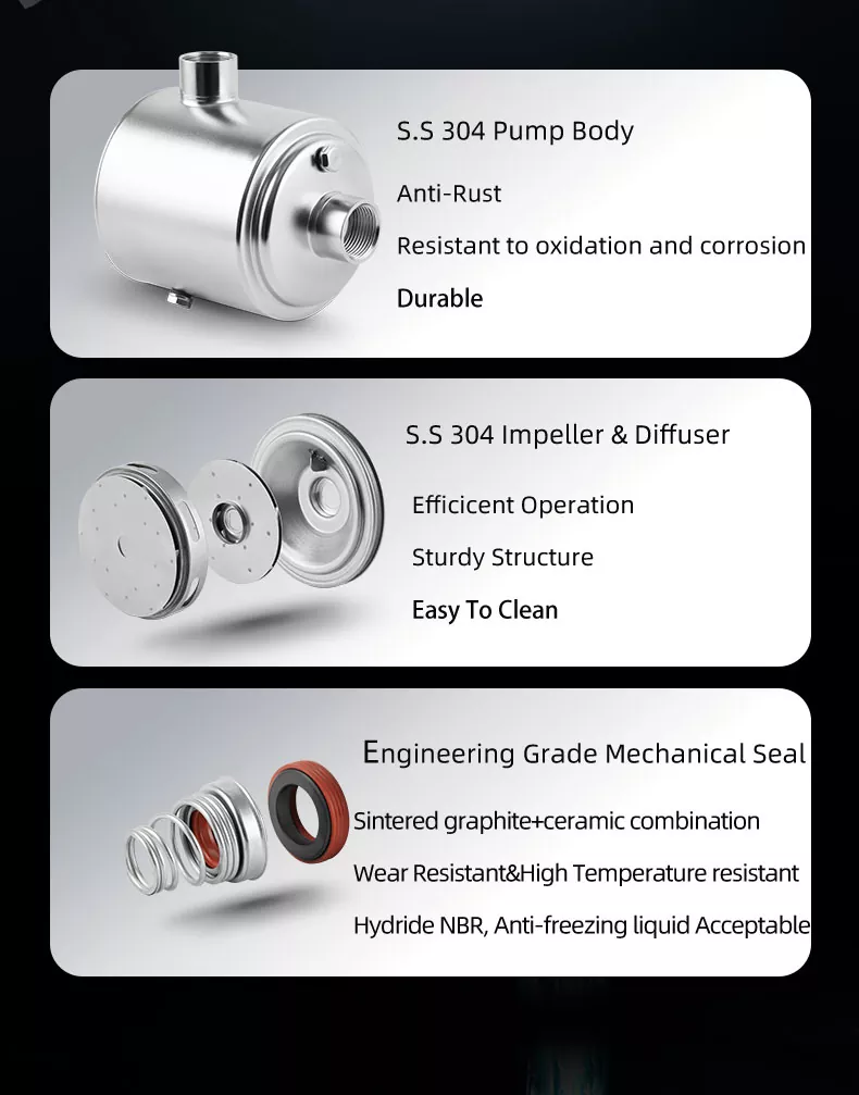 Trvanlivost je klíčová, pokud jde o vodní čerpadla, a naše inteligentní vícestupňové tlakové čerpadlo je postaveno tak, aby vydrželo. Toto čerpadlo, které je vyrobeno z vysoce kvalitních materiálů a navrženo pro dlouhodobou spolehlivost, je investicí, která vám bude dobře sloužit pro nadcházející roky. Ať už jej používáte pro obytné nebo komerční aplikace, můžete věřit, že toto čerpadlo vydrží zkoušku času.